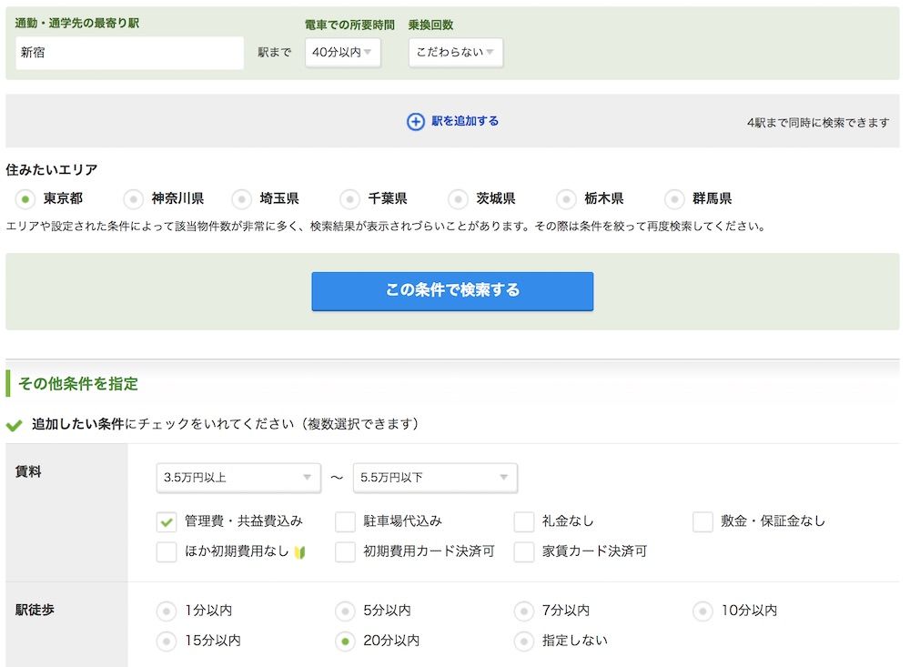 - In Tokyo (we could get more results by including the surrounding prefectures, but Suumo only lets you choose one area at a time)
